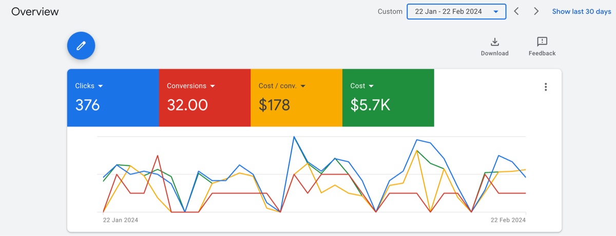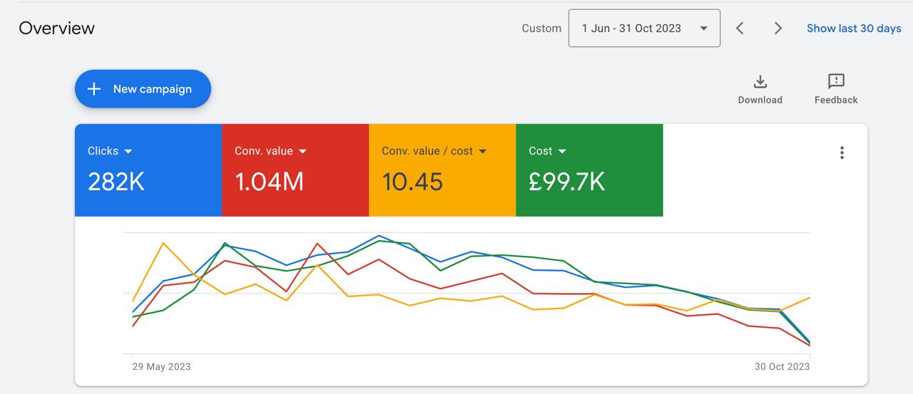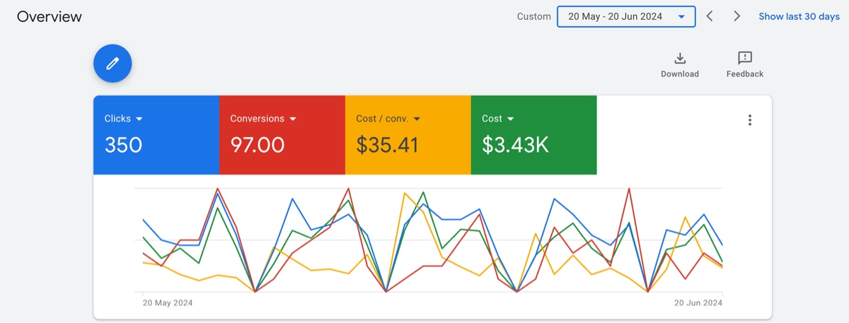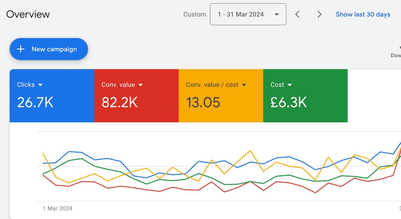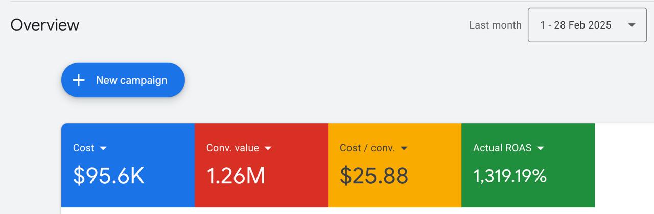 Return on Ad Spend (ROAS): 21.74 ROAS