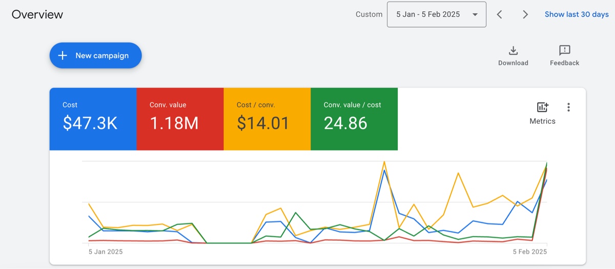 Return on Ad Spend (ROAS): 24.86