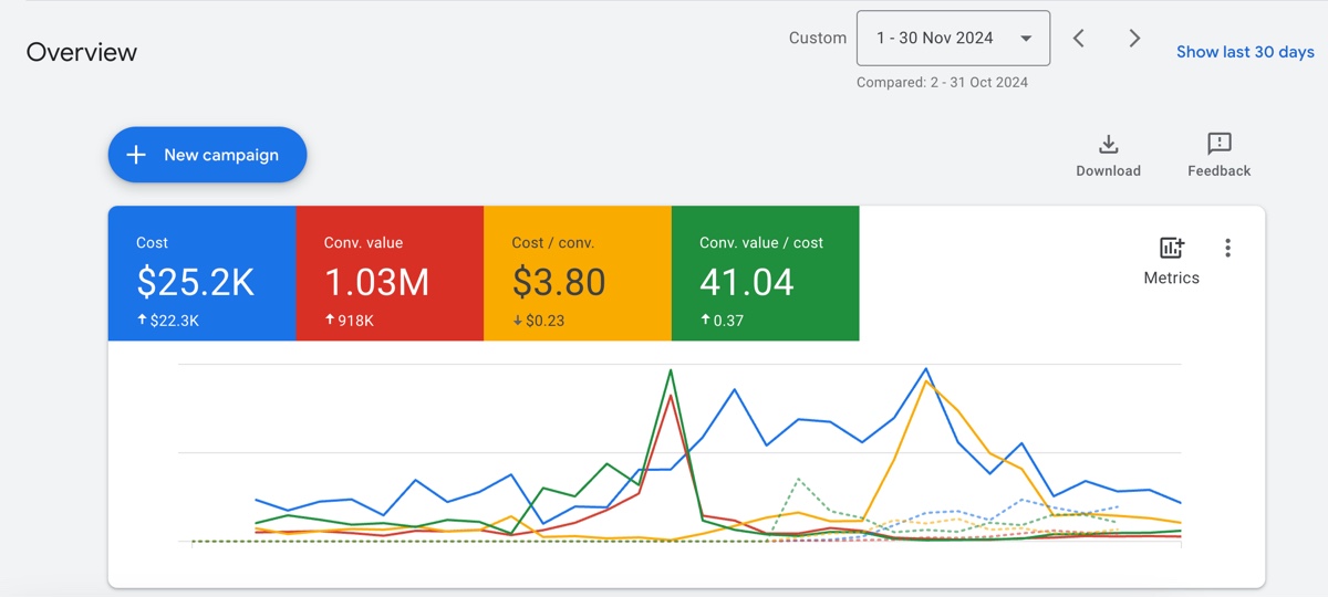 Return on Ad Spend (ROAS): 11.35 ROAS